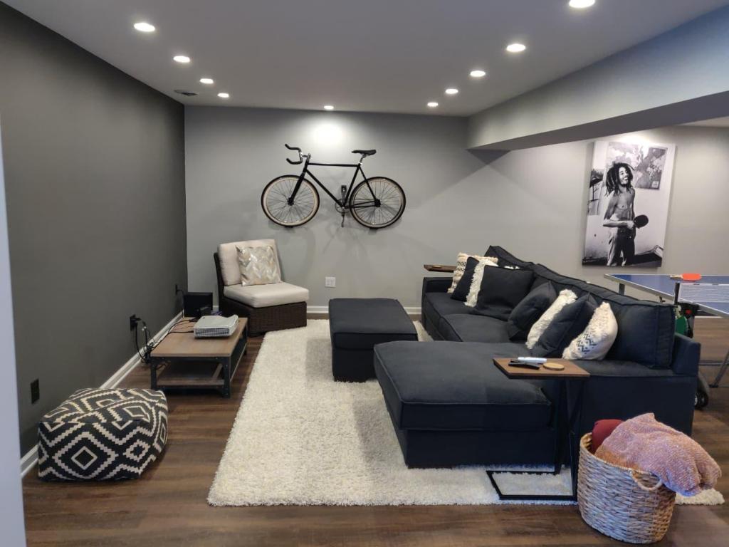 - Soft Whites like “Alabaster” reflect light beautifully, creating an open and airy feel in basements.